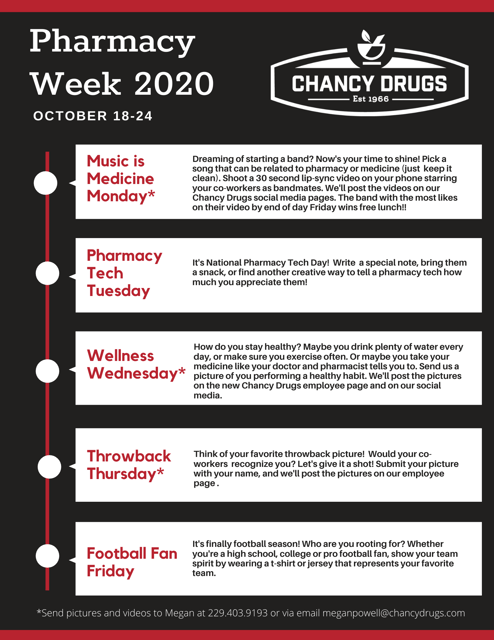 Let's celebrate! National Pharmacy Week is October 18-24, and we have several fun activities scheduled.